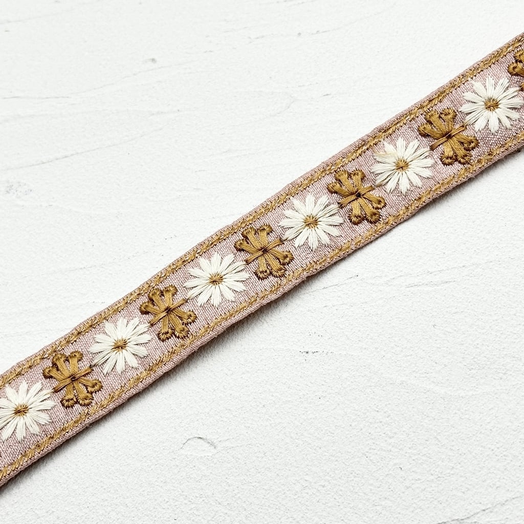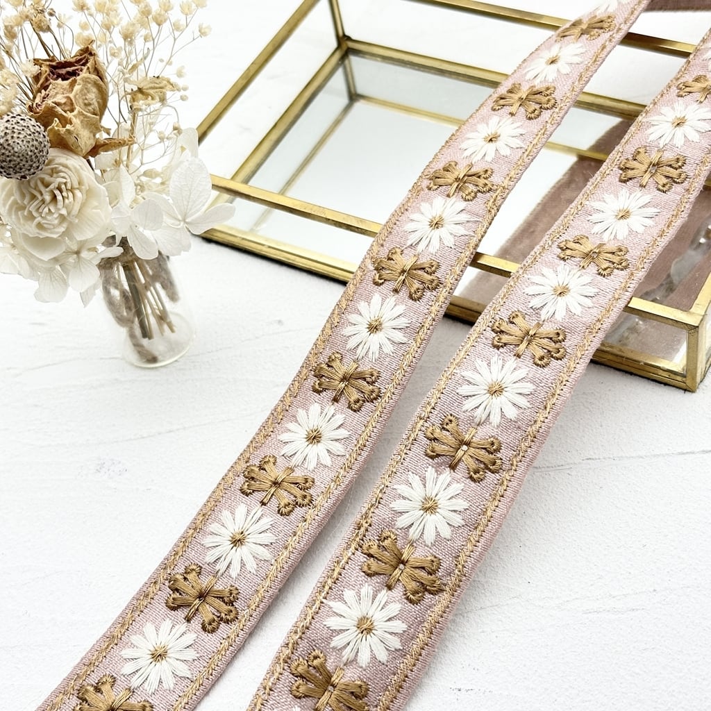 1ロール デイジークロス NEWタイプ [くすみピンク]インド刺繍リボン 2588-1R