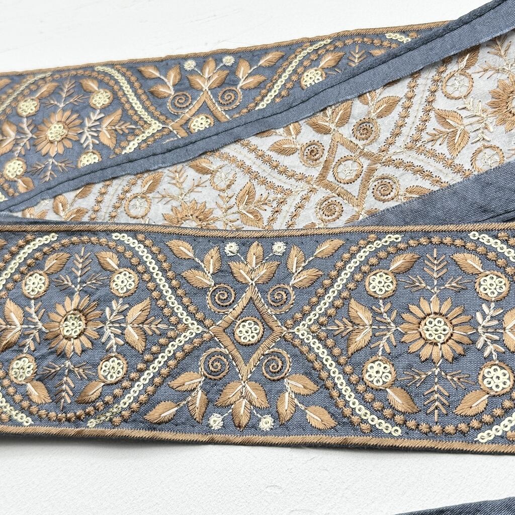 シャイニング [モカネイビー]インド刺繍リボン 2510