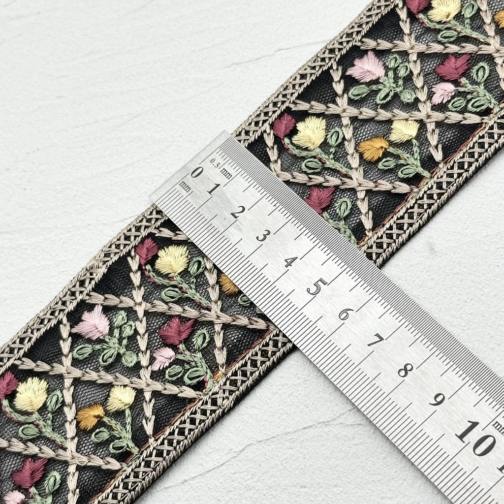 フローラルエレガンス [ブラック]インド刺繍リボン 2513