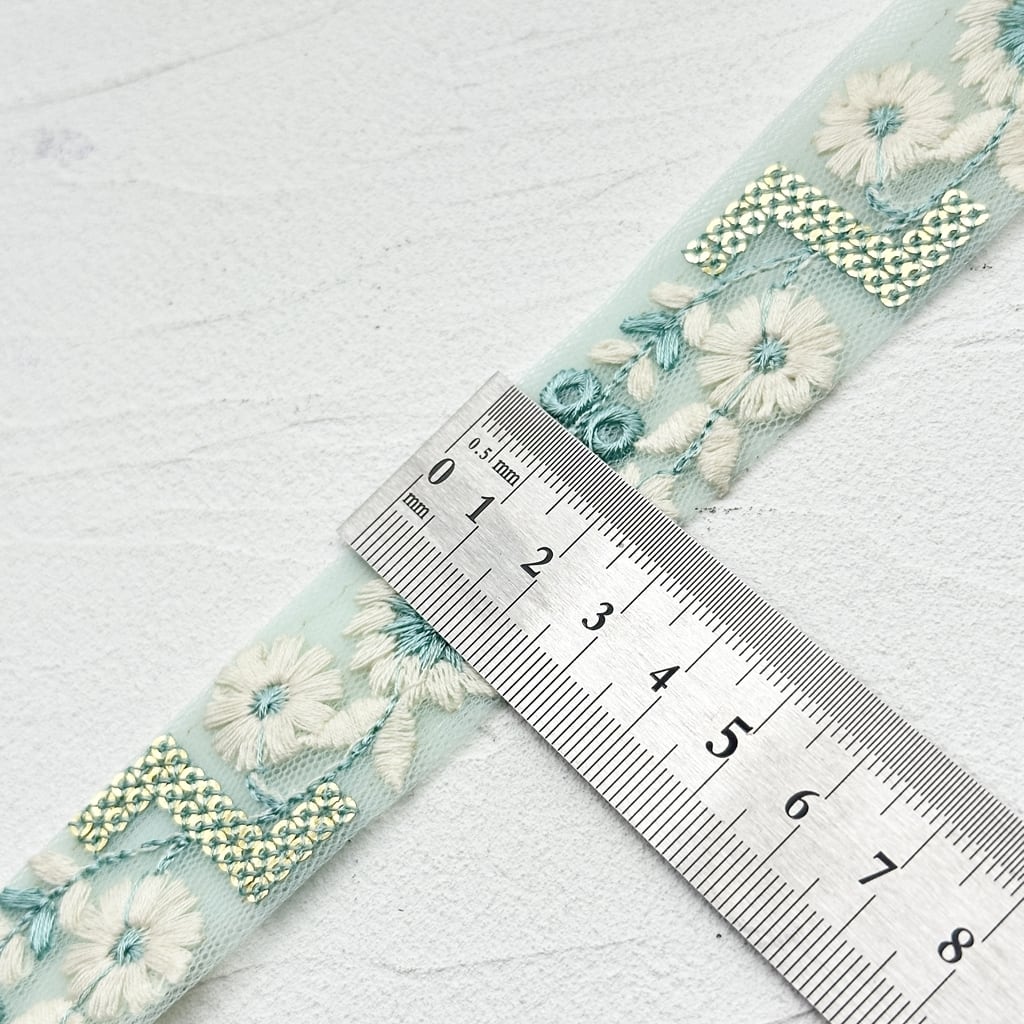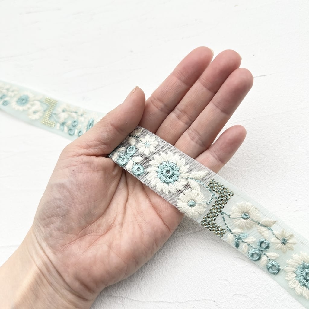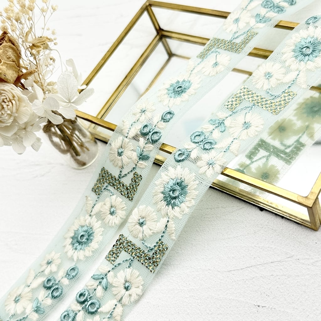 キュートスタイル [ミント]インド刺繍リボン 2548