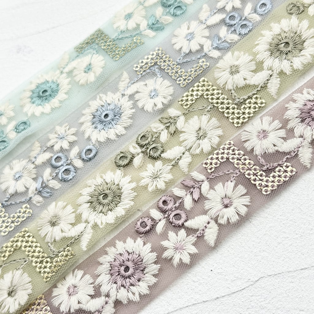 インド刺繍リボンは、細かい刺繍が施されていて色も鮮やかなリボンです。
