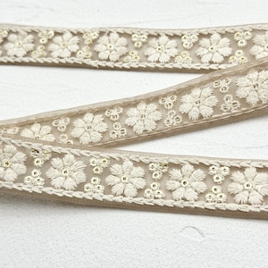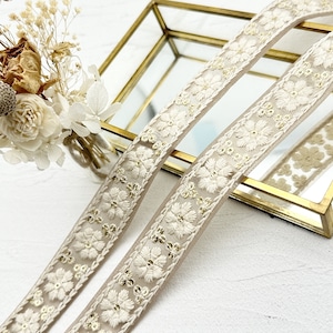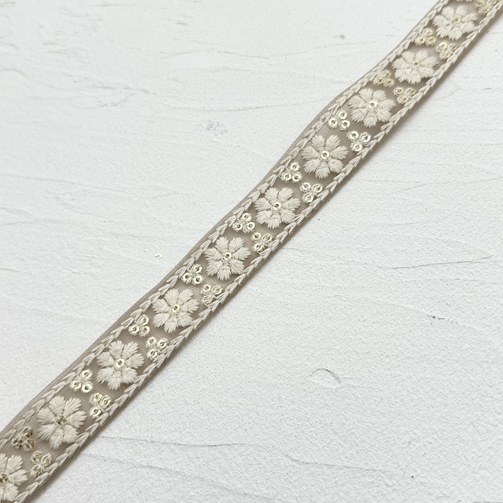 クローバーメロディ [ベージュ]インド刺繍リボン 2567