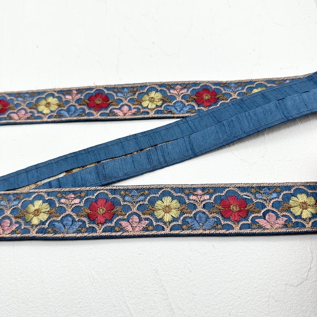 パステルフラワー [ネイビー]インド刺繍リボン 2643