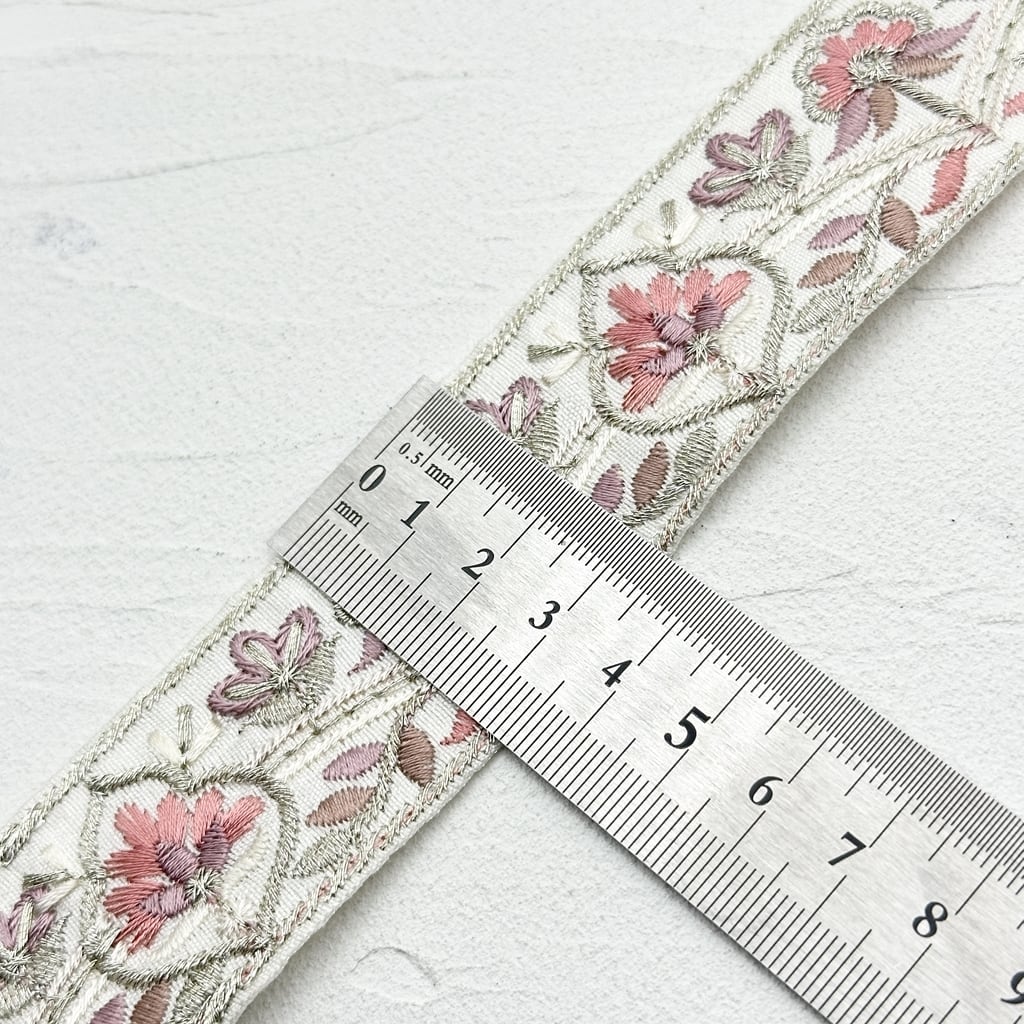 フローラルデライト [ピンクホワイト]インド刺繍リボン 2660