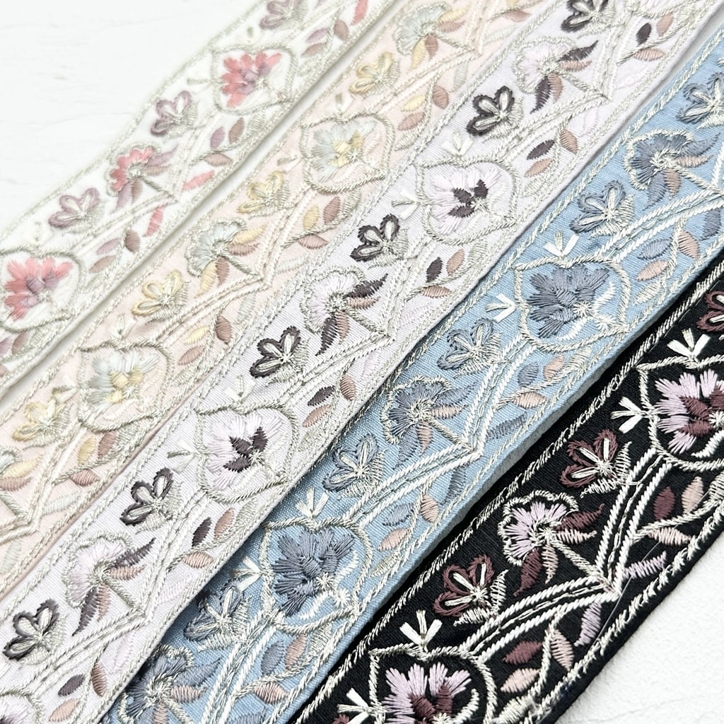 インド刺繍リボンは、細かい刺繍が施されていて色も鮮やかなリボンです。