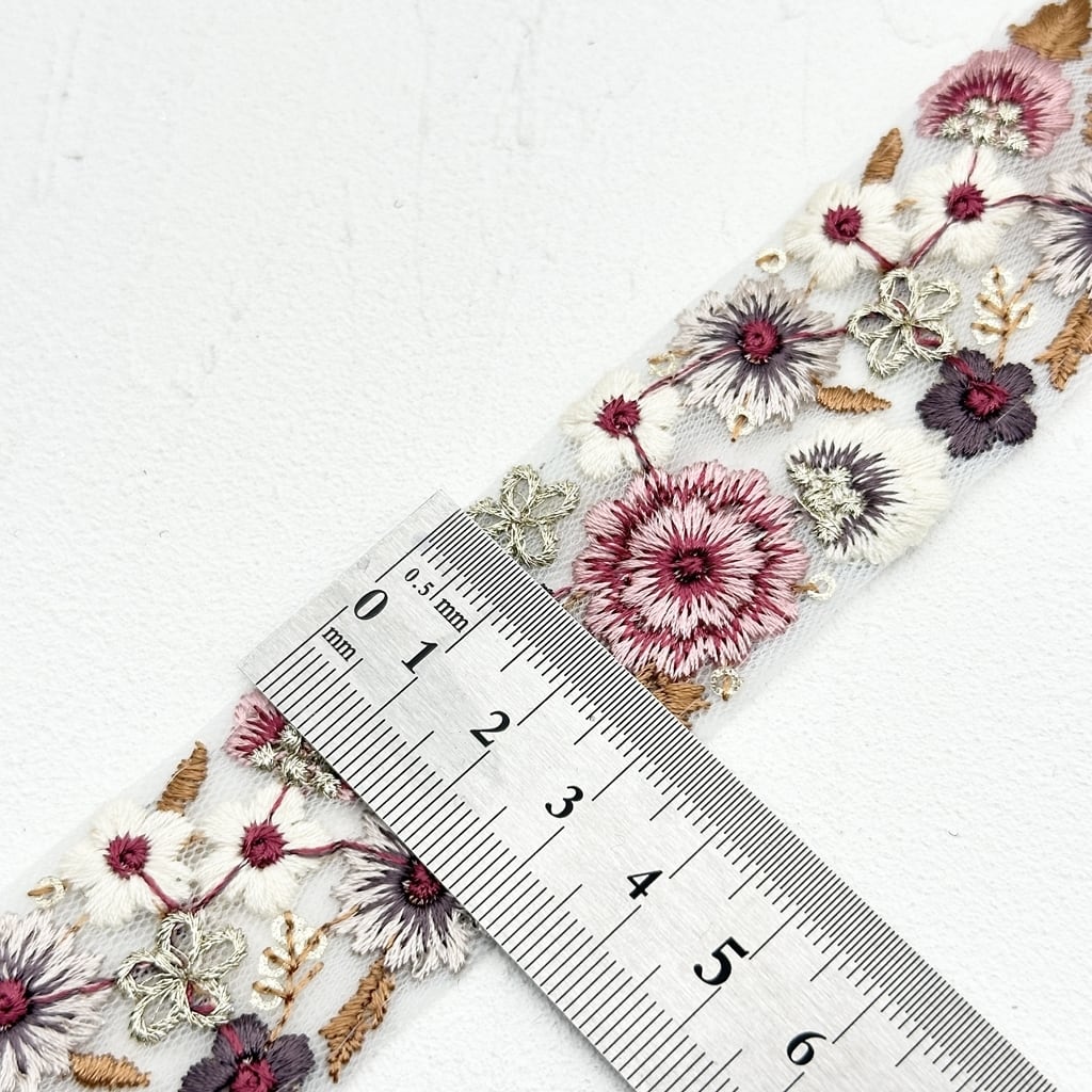 ファンタジック [ピンクグレー]インド刺繍リボン 2729